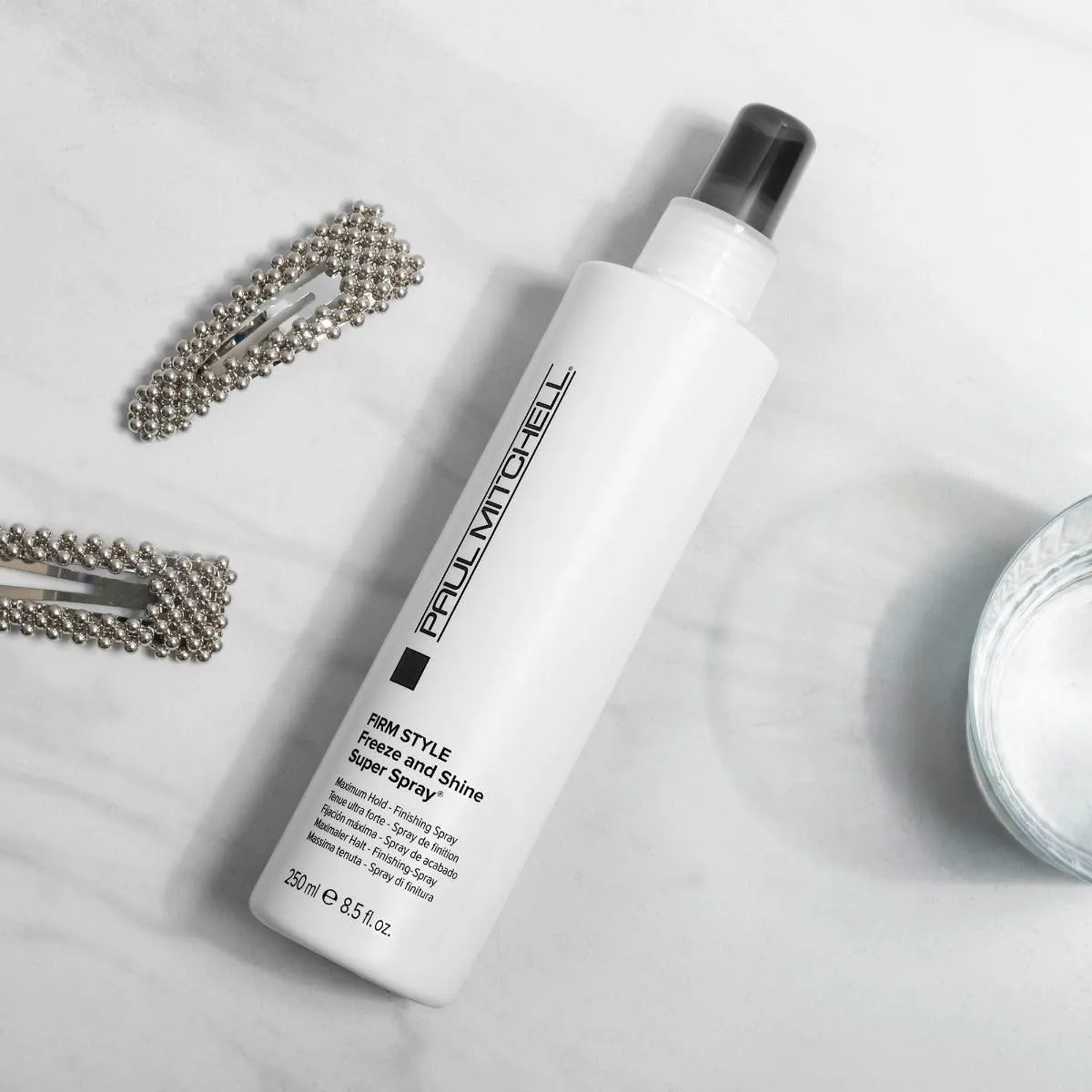 Freeze. hair! This shine-enhancing. non-aerosol hairspray locks any look in place with powerful hold and a high-shine finish.