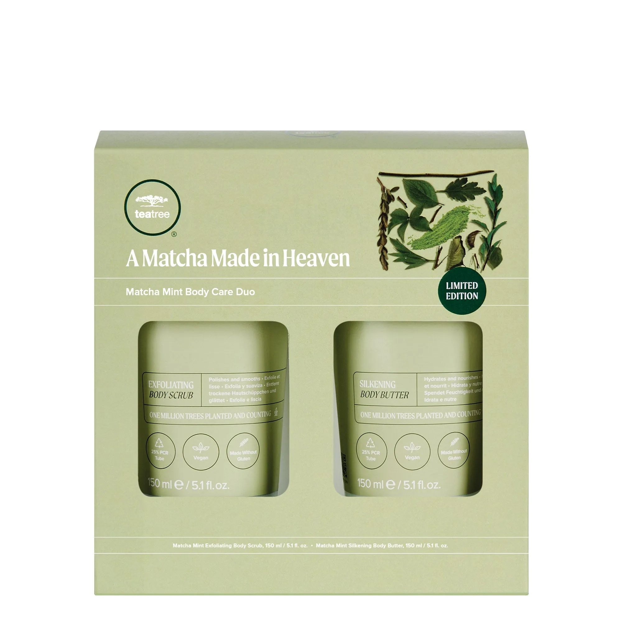 1 ?C Tea Tree Matcha Mint Silkening Body Butter (5.1 oz.): Indulge your matcha cravings with this moisture-rich body butter. The light-yet-luxurious formula with shea butter. cocoa butter and avocado oil provides soothing moisture for all skin types. Quick to absorb and never greasy. it leaves skin silky soft and enrobes the senses in the sweet. clean fragrance of mint blended with earthy matcha and a hint of delicate florals. *Note: melting into total matcha mint bliss is not uncommon.*